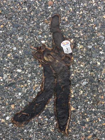If Jurassic Park posits “Dino DNA,” what must the implications be for this casually discarded banana that “stuck” around and eventually became part of the parking lot?